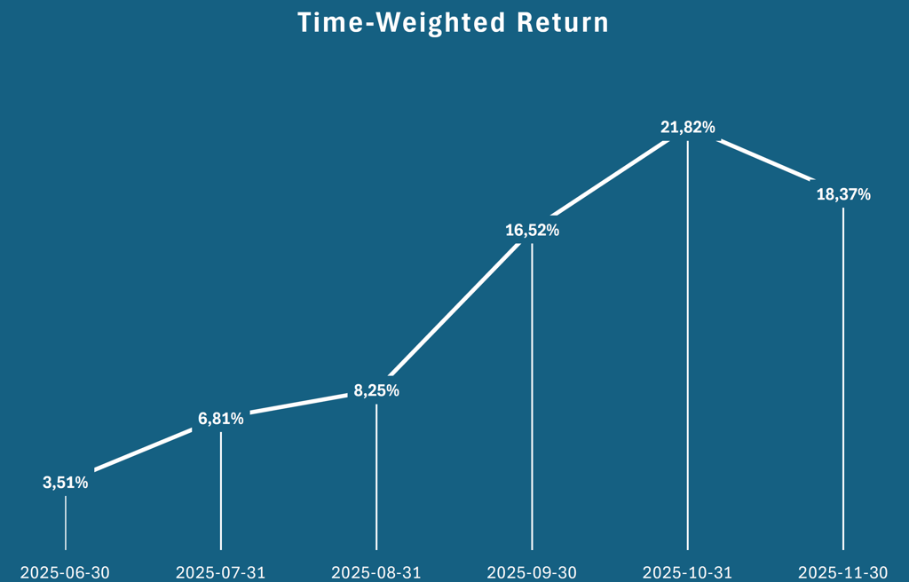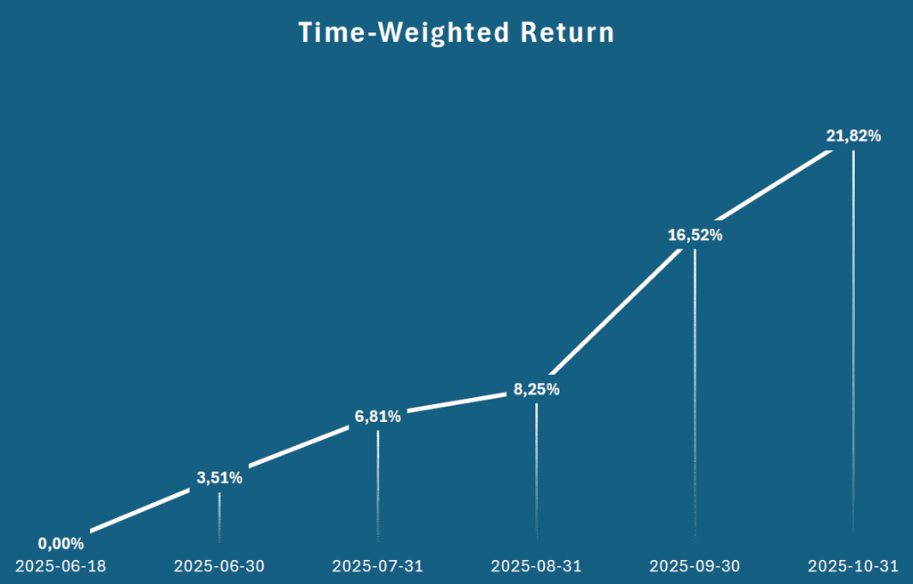 Realizavome daugiau nei 25 % pelno per 2025 m. sausį - rugpjūtį. Portfelį uždarėme siekdami skirti maksimalų dėmesį uždirbti kartu su partneriais.
